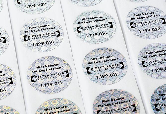 Kempa BrandProtect Etiketten für den Marken- und Produktschutz stehen als Rollen- und Blatt-Etiketten zur Verfügung und können mit weiteren sinnvollen Sicherheitsmerkmalen ausgestattet werden. Empfehlenswert ist zum Beispiel die Ausstattung mit Individualisierungen durch Nummernkreise u.v.m.